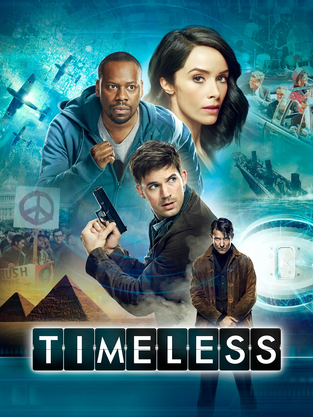 Timeless is an NBC action-adventure series from co-creators and executive producers Eric Kripke, Shawn Ryan, and the producers of The Blacklist. Abigail Spencer, Matt Lanter and Malcolm Barrett star as an unexpected team as they travel back into the past to protect the timeline from a mysterious criminal intent on destroying America through time.